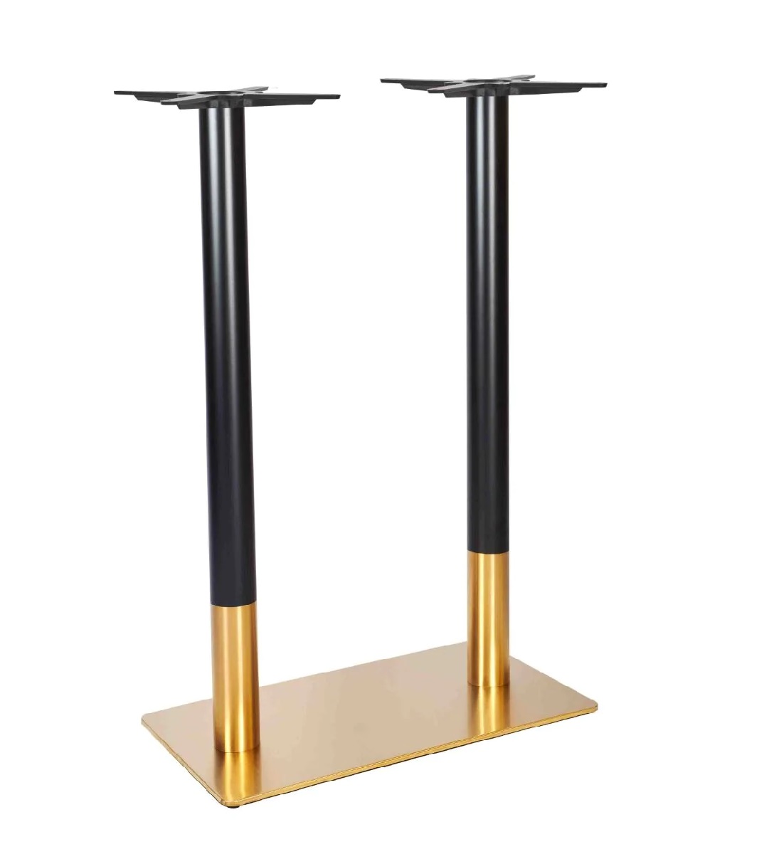 This Restaurant table Double Square Rectangle Black Gold Poseur Bar Height base model 6085 is sturdy strong cast iron table bases made specifically for the heavy use of a busy commercial establishment.